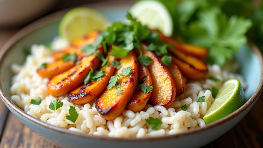 5. Assemble the Bowls: Divide the coconut milk rice among serving bowls. Top each bowl with sliced grilled chicken. Garnish with fresh cilantro and serve with lime wedges on the side for an extra burst of freshness.