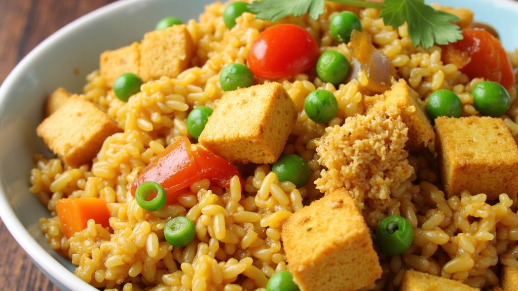 The key to this dish is in the balance of spices that infuse the rice and tofu, creating a meal that isn’t only delicious but also nutritious. It’s a great way to use leftover rice and is versatile enough to include any vegetables you have on hand.