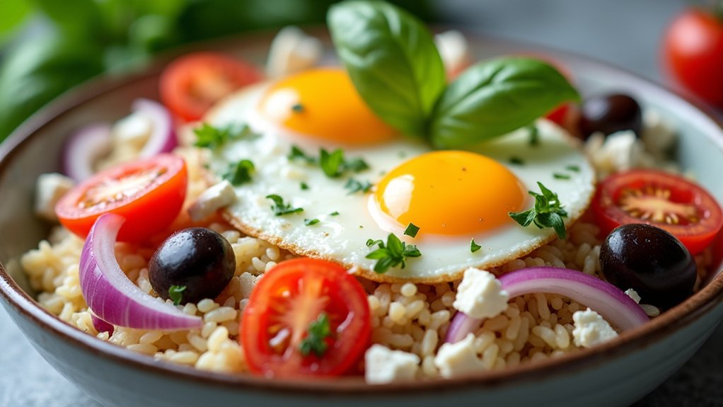 mediterranean egg rice bowl