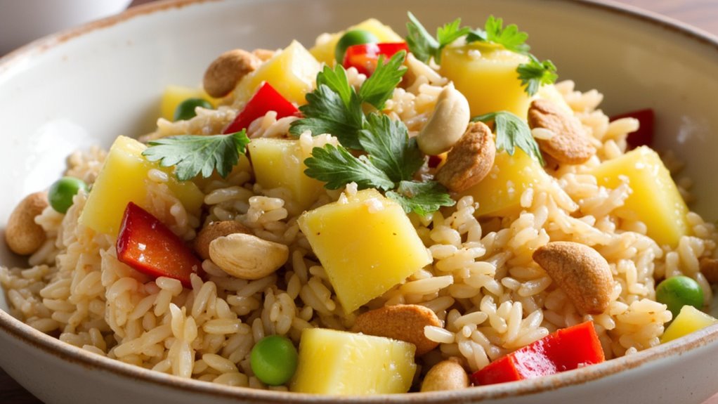Tropical Pineapple and Cashew Rice is a delightful vegetarian dish that brings a taste of the tropics to your dining table. This recipe combines the sweetness of pineapple with the crunch of cashews, creating a perfect harmony of flavors and textures. The slow cooker method allows the flavors to meld beautifully, resulting in a savory and satisfying meal that’s both easy to prepare and deliciously comforting.