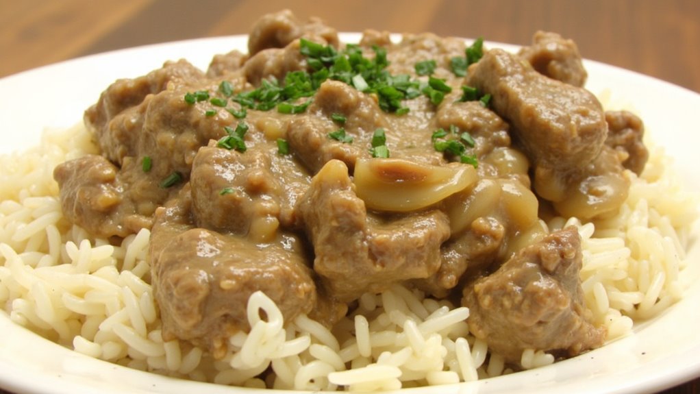 Slow Cooker Beef Stroganoff With Rice